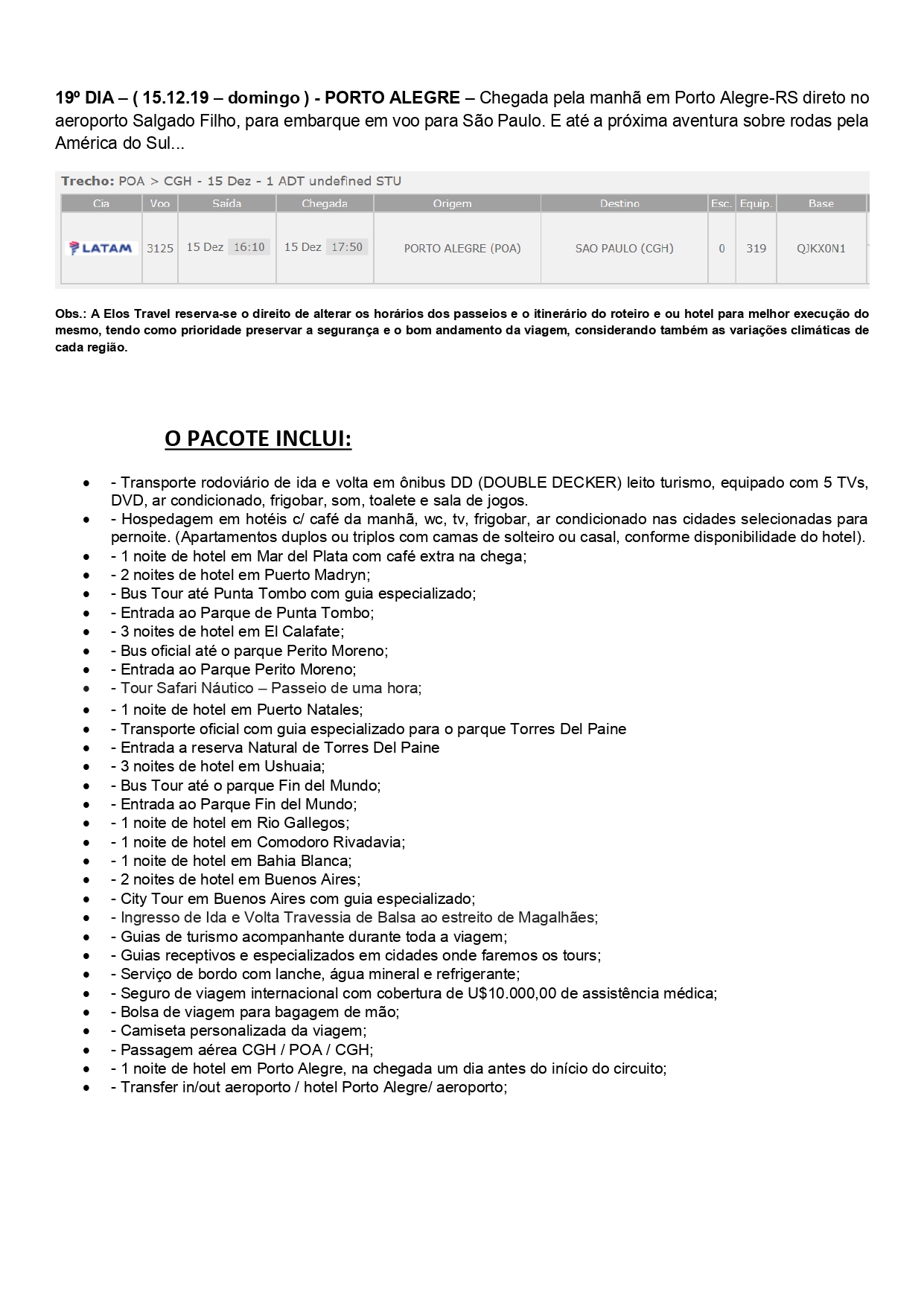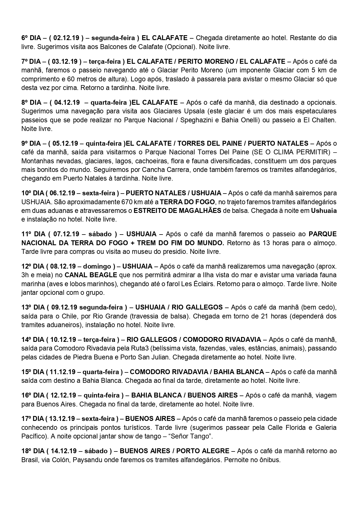 Circuíto Patagônia Argentina e Chilena. 27/11 a 15/12/2019.