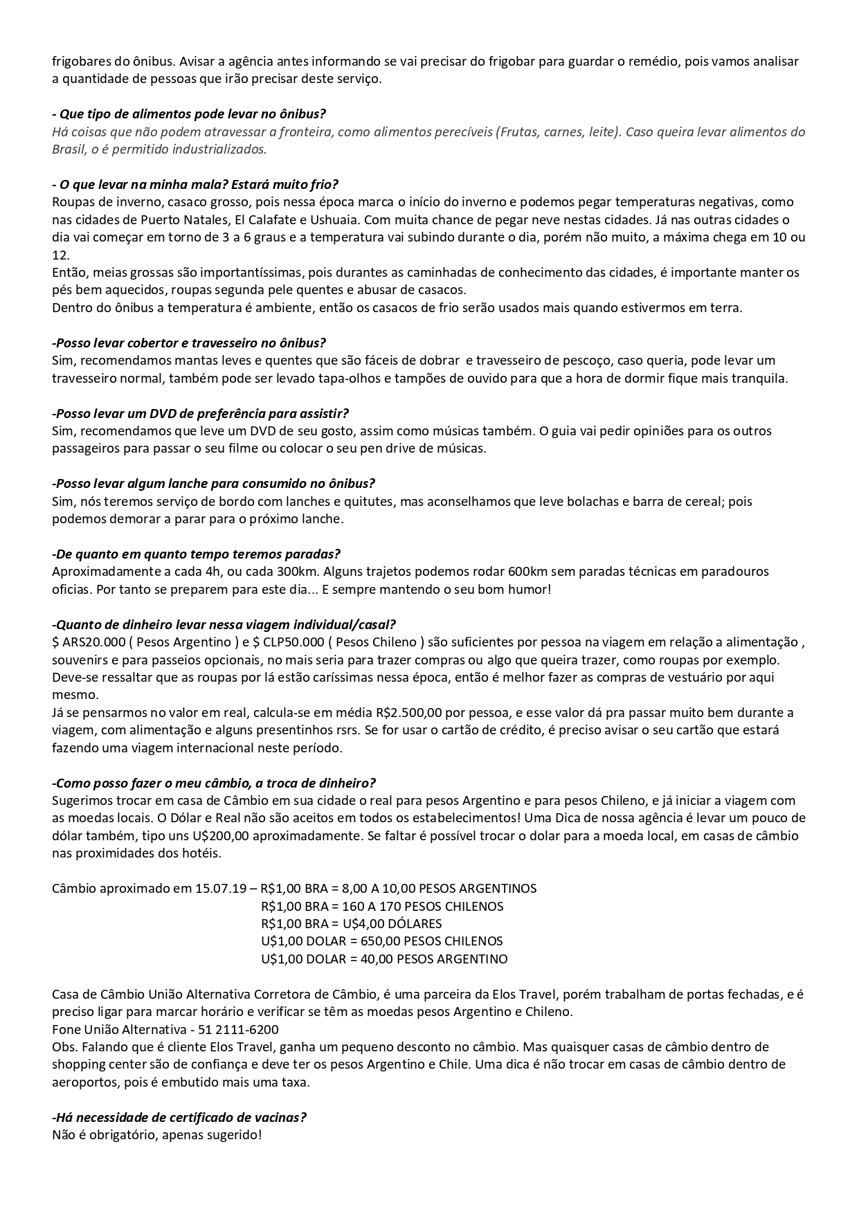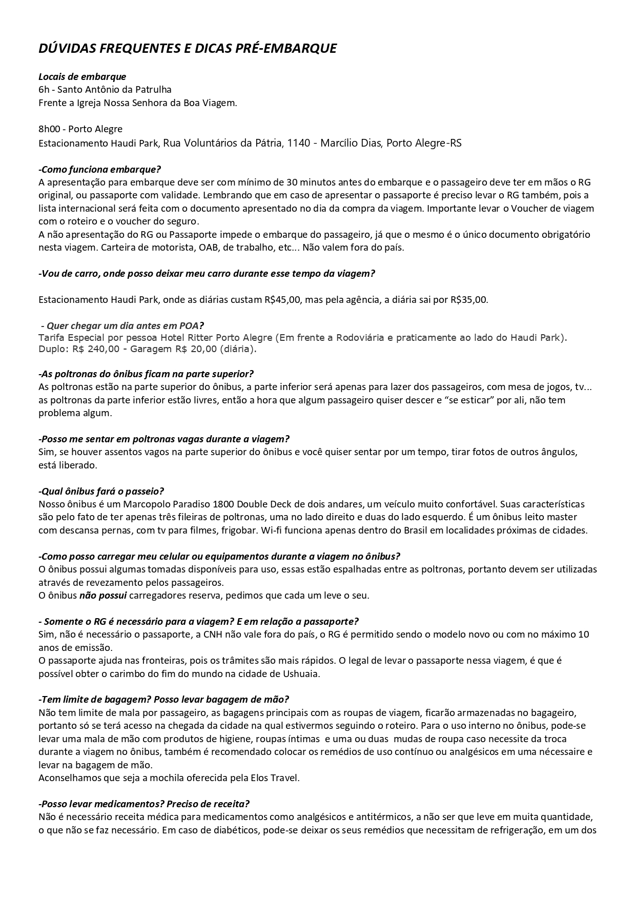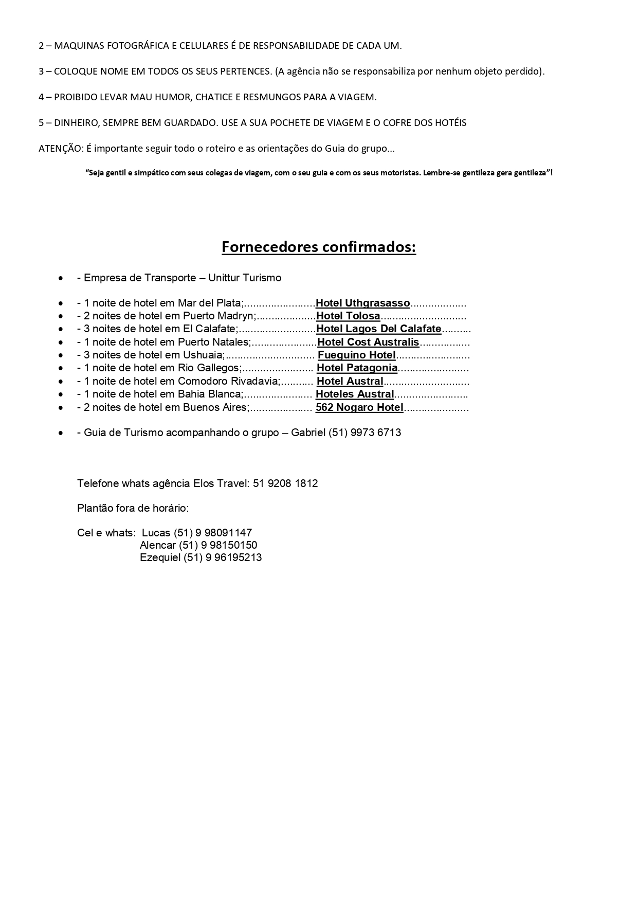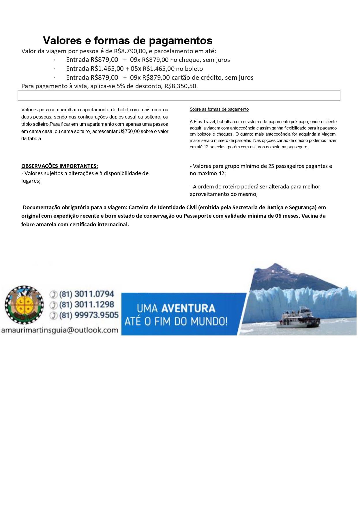 ROTEIRO E CONDIÇÕES GERAIS, INSCRIÇÕES E FORMA DE PAGAMENTO